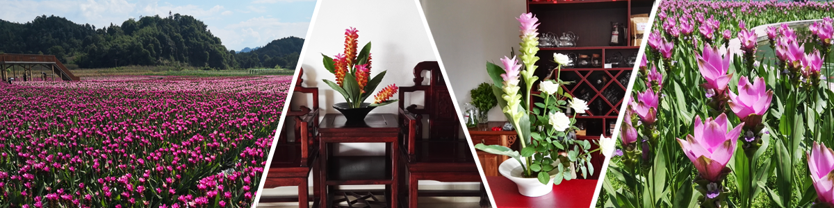 姜荷花(学名:Curcuma alismatifoliaGagnep.)是姜科,姜黄属多年生草本植物,热带球根花卉,原产于泰国清迈一带,主要作为佛教用花。由于粉红色的苞片酷似荷花,且为姜科,故称姜荷花。姜荷花为穗状花序,上部苞叶为桃红色阔卵形不育苞片,下部为蜂窝状绿色苞片,内含紫白色小花,花期6-10 月。姜荷花因其独特的花型,鲜艳的花色以及花期长,在日本和台湾深受人们的青睐,在我国的广东、福建、云南、广西、山东、浙江等地都有少量的鲜切花种植。